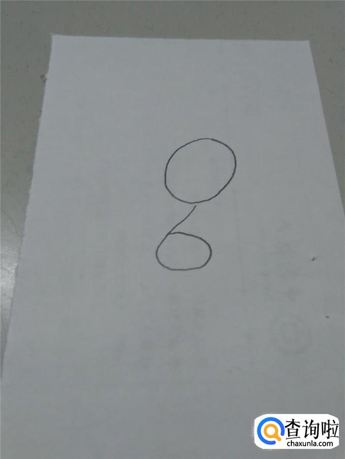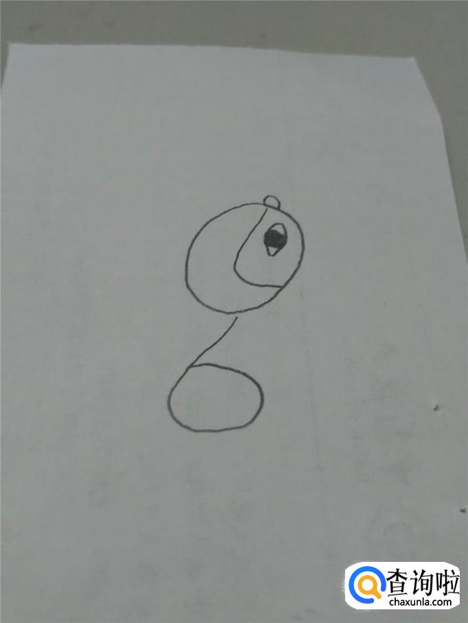 在头的上方画一个小圆圈,表示鼻子,在脸的部分画一个椭圆形,表示眼睛,在眼睛里面点一个黑点,表示眼珠。