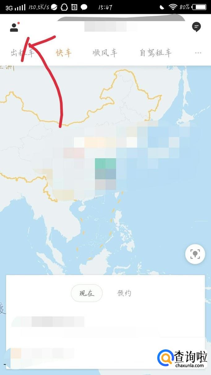 首先打开滴滴出行这个app,进入滴滴出行后会看到一个新的界面,如图2所示