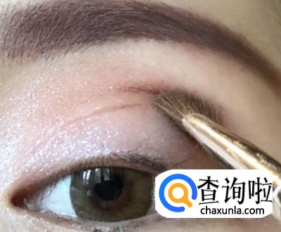 选择合适颜色的眼影,比如有打底色、提亮色、眼线色、过渡色、眼窝色等,用手将眼影膏点在眼折中间,并用刷子晕开。