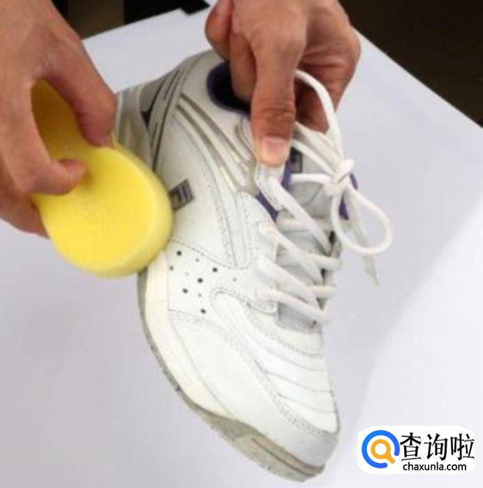 去店里买来铅粉,再将鞋洗净,趁鞋湿的时候将铅粉刷上去,再用包上白色卫生纸晒即可。