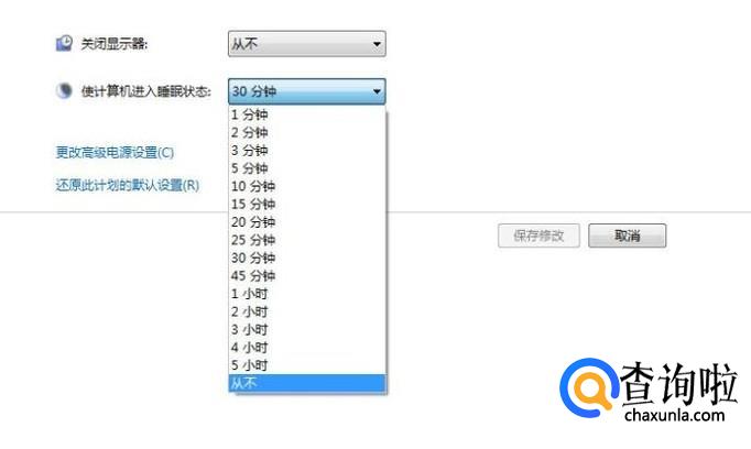 最后点击使计算机进入睡眠状态的时间设置为从不,并点击保存修改就可以了。你学会了吗?赶快动手试一试吧。