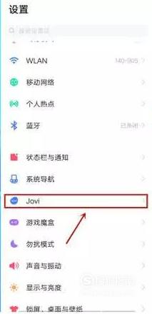 进入“设置”程序以后,在设置列表中找到“Jovi”并且点击