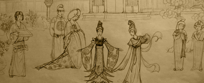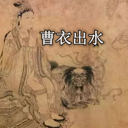 “曹衣出水”又称“曹家样”,是由中亚曹国的北齐曹仲达创造的中国古代人物衣服褶纹画法之一。《图画见闻志》说,曹仲达的人物画衣服褶纹多用细笔紧束,似衣披薄纱,又如刚从水中捞出之感,后人因之命名。