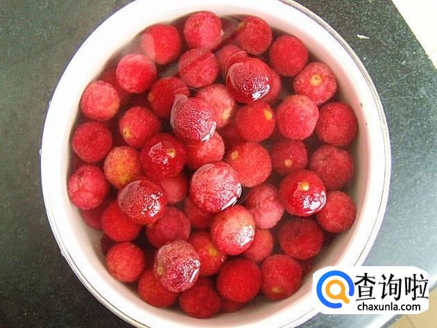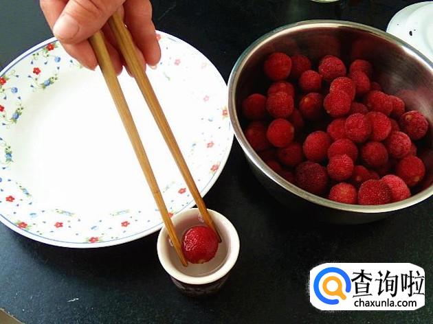 然后就把我们从野生的杨梅用盐水先浸泡一下,因为杨梅中有很多小白虫,我们可以用盐水把杨梅内的虫子逼出来。