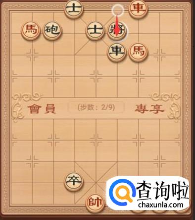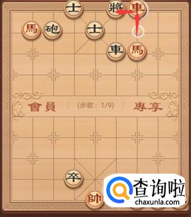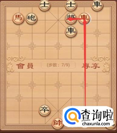 红方还是继续要将军,红方这里就是车左走一步,继续将军,如图。
