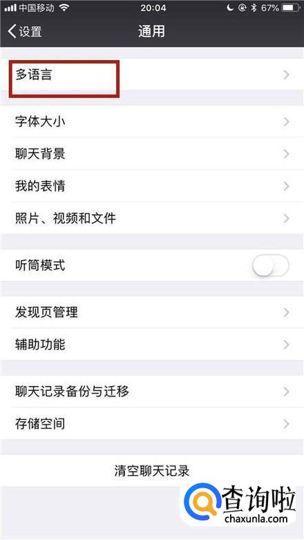 这样我们就把微信的语言从中文变成英文了。