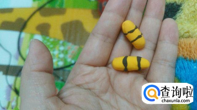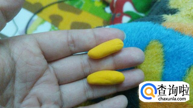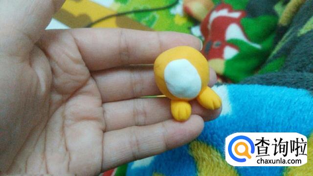 然后再取黄色超轻粘土,捏成两个椭圆形做老虎的手臂,椭圆形的末端一定要圆润。