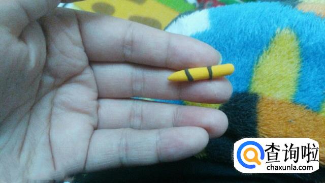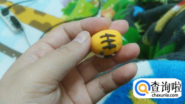 然后我们再去拿咖啡色的粘土搓成几条,然后排列成老虎头上的王字。