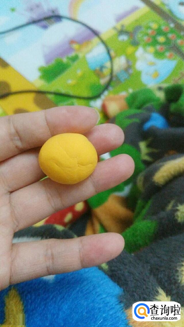 首先我们拿一团黄色的超轻粘土,先用手搓成一个圆,然后再微微压扁,做成老虎的头。