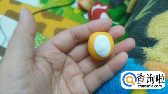 然后我们再取一块黄色的超级粘土,做成椭圆形,当做是老虎的身体,再取一块白色的超轻粘土,把他搓圆再压扁成椭圆形,当成是老虎的肚皮,这个椭圆形要比老虎的身体小一圈。