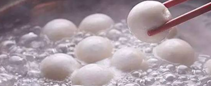 轻捏汤圆使外表皮微裂,沸水下锅煮好才不易夹生,同时用勺将其推开,再朝一个方向略作搅动使其不粘锅,旺火煮至浮起后迅速改小火慢煮,每烧开一次需点适量冷水,烧开两三次后,再煮一下就要出锅,吃不完的也要及时出锅。若还继续煮,要及时换水以免粘锅。