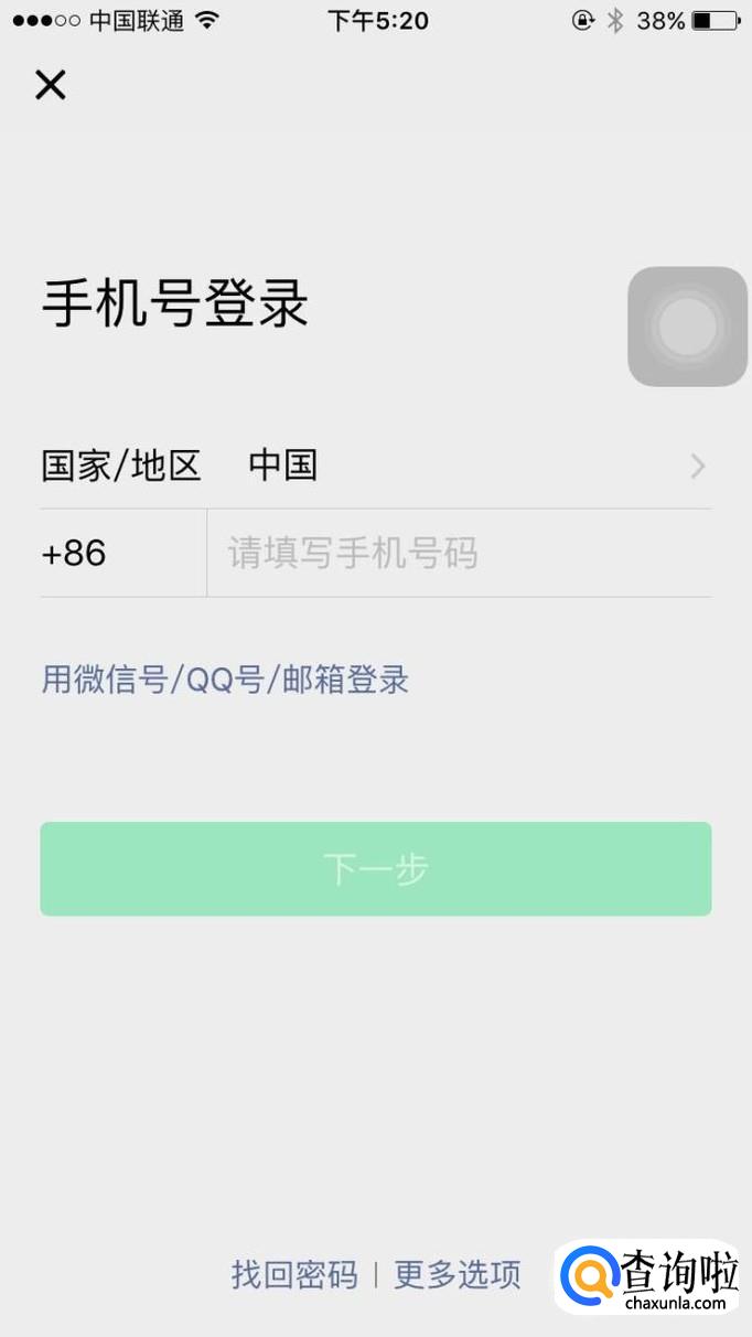首先输入手机号码(自己微信所对应的手机号码)并点击下一步。