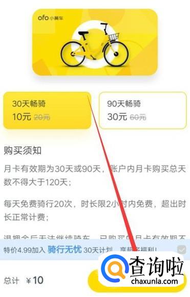 ofo小黄车怎么购买月卡 小黄车月卡怎么用