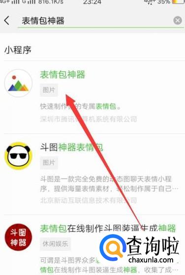 进入之后,搜索表情包神器,点击并进入,如图所示。