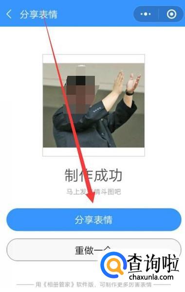 进入之后,点击“分享表情”即可将制作的动态表情包分享出去,如图所示。