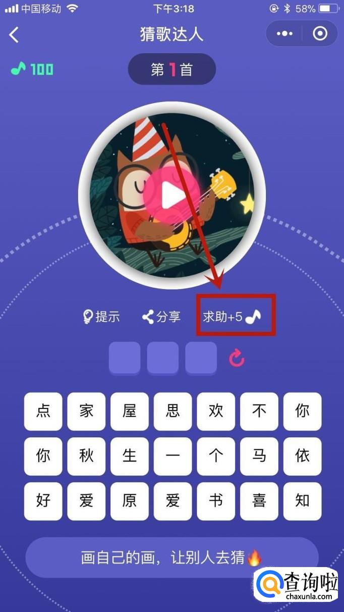 如果你不懂得这首歌是什么名字的话,你可以点击屏幕中的求助,让你的好友来帮助你也是可以的。