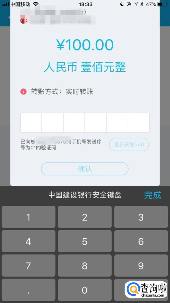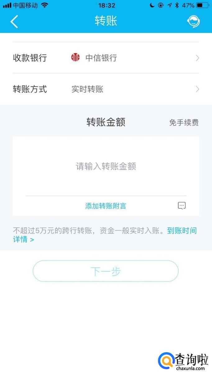 接着输入我们想要的转账金额并点击下一步,如下图所示。