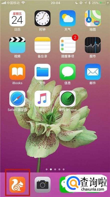 首先在我们的手机桌面上找到UC浏览器并点击它,如下图所示。