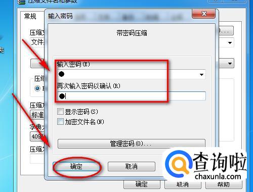 最后输入密码和确认密码,再点击“确定”按钮即可。