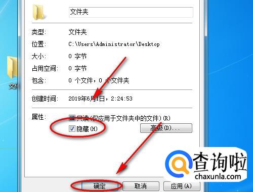 将属性选为“隐藏”,然后再点击下方的“确定”按钮。