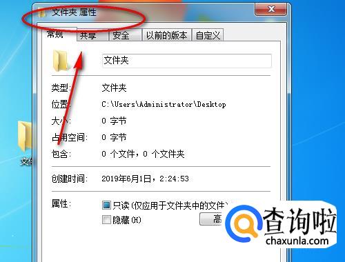 会弹出一个“文件夹属性”窗口。