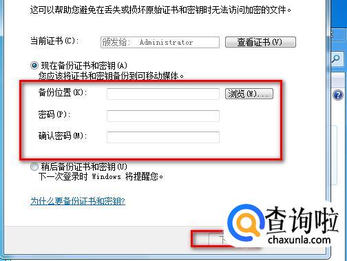 然后再选择“备份位置”和“密码”,再点击“下一步”按钮即可。