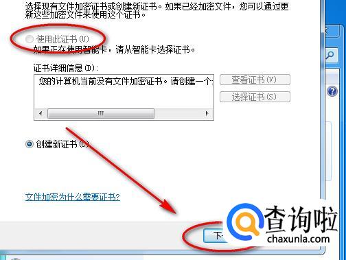 选择“使用此证书”,然后再点击下方的“下一步”按钮。