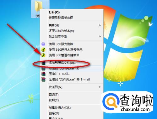 然后右击该文件夹,会弹出下拉菜单,点击“添加到压缩文件”。