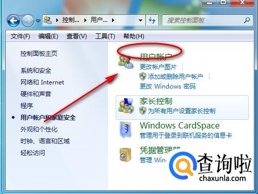 然后再点击“用户账户”。