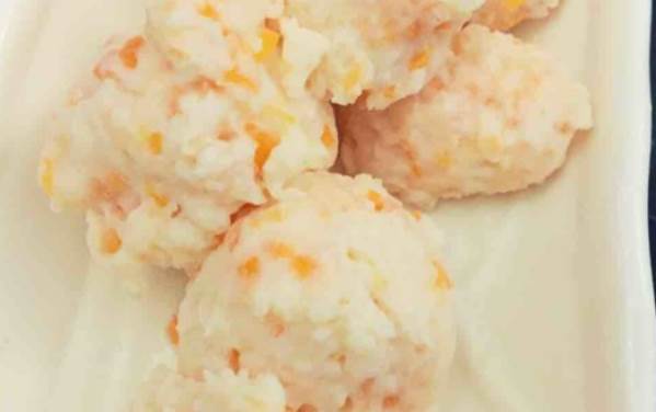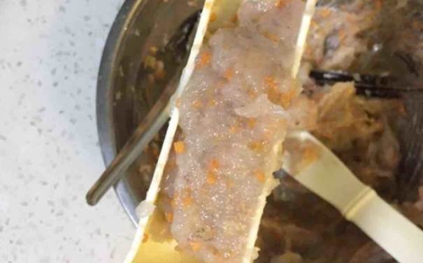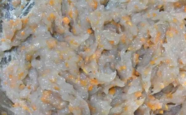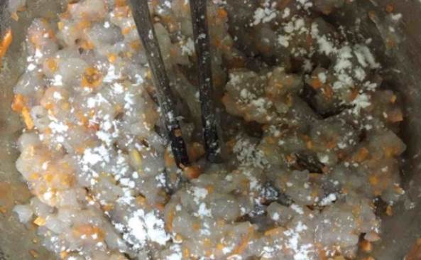 第五步:放入胡萝卜碎、淀粉、鸡蛋清。