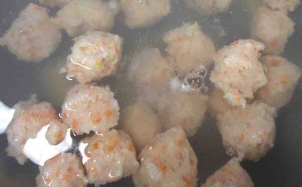 第八步:丸子成型后大火烧开,丸子都飘上来就熟了。