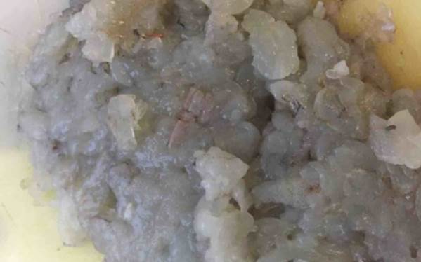第七步:用丸子制作器放好虾泥,等待锅里水烧开后关火以防丸子放锅里散开。