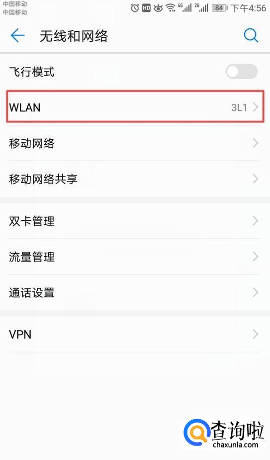 弹出的界面,我们点击WLAN;