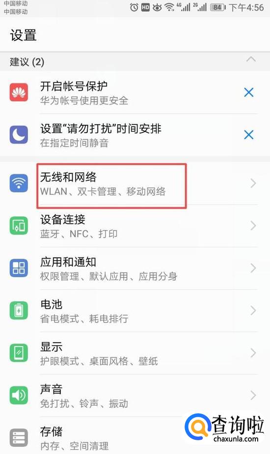 进入设置后,我们点击无线和网络;
