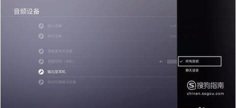 注意两个选项:“所有音频”(能听到PS4所有声音),“聊天语音”(耳机上仅听到聊天语音)