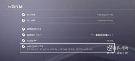设置“自动切换输出设备”(该选项在关闭后,PS4将无法自动输出至耳机,插上耳机将听不到声音)