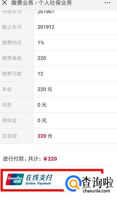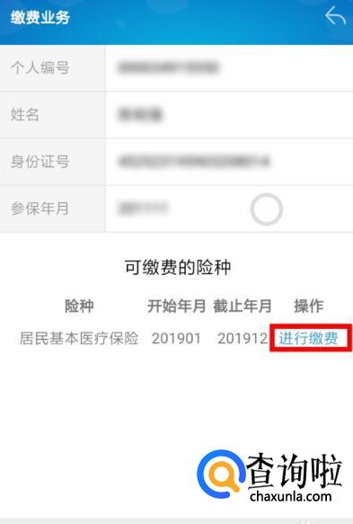 不管是个人缴费还是帮他人缴费,输入信息后,都会进入缴费页面,选择“进行缴费”。