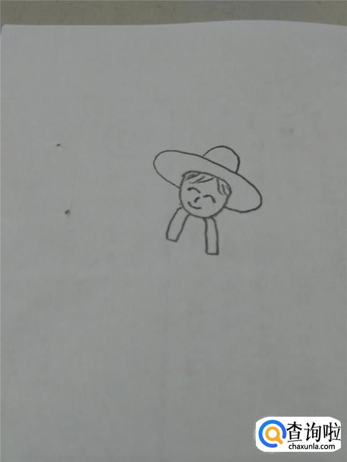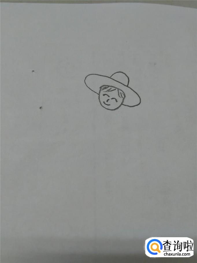 先用铅笔在纸上画一个半圆形,表示农民的脸,因为上半张脸被草帽盖住了。