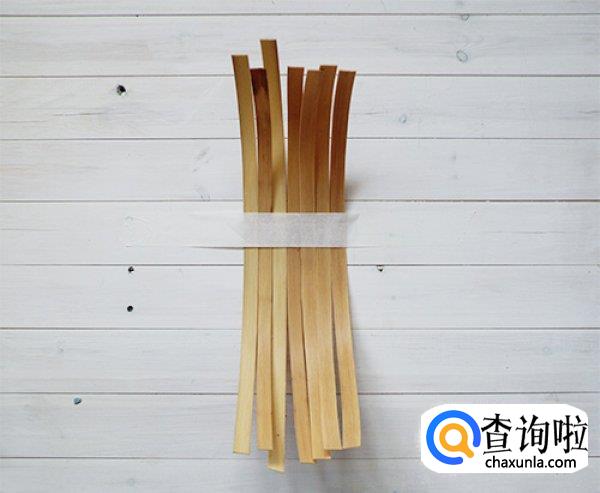 然后我们把竹条裁切到同一个长度,然后拿胶带固定到桌子上,方便后续操作。
