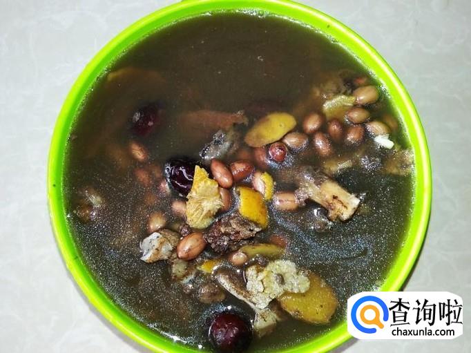 牛脖子骨2斤,红皮花生100克,红枣30克,糯米酒2勺,姜片适量,陈皮适量。