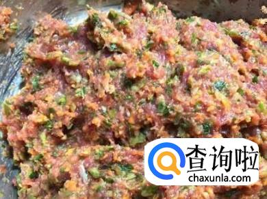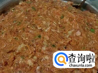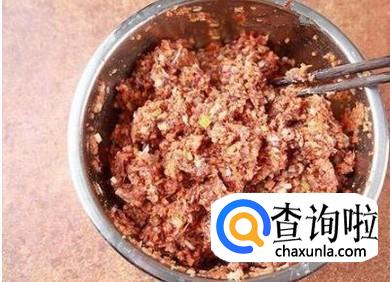 牛肉绞成肉末加一到两汤匙的料酒,十三香少许,葱花,及少量的油搅拌入味。