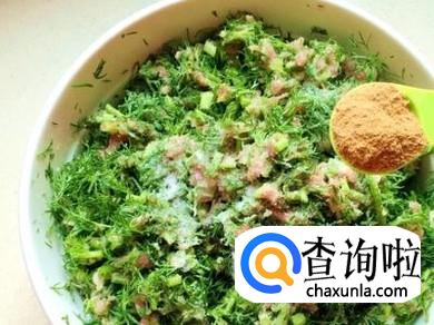 将茴香洗净后切成碎末放在锅中炒熟,将牛肉切块后剁成肉泥,同生抽,香油,葱末,姜末等搅拌均匀,之后加入茴香末再次搅拌,并加入少量盐即可。