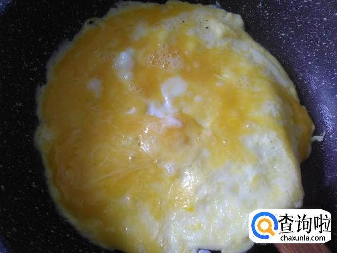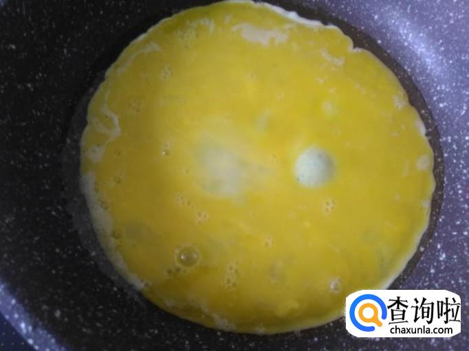 开火下油,把鸡蛋倒到锅里用小火煎。