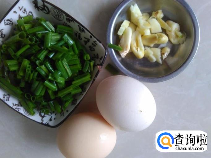 鸡蛋、蒜米、香葱准备好。