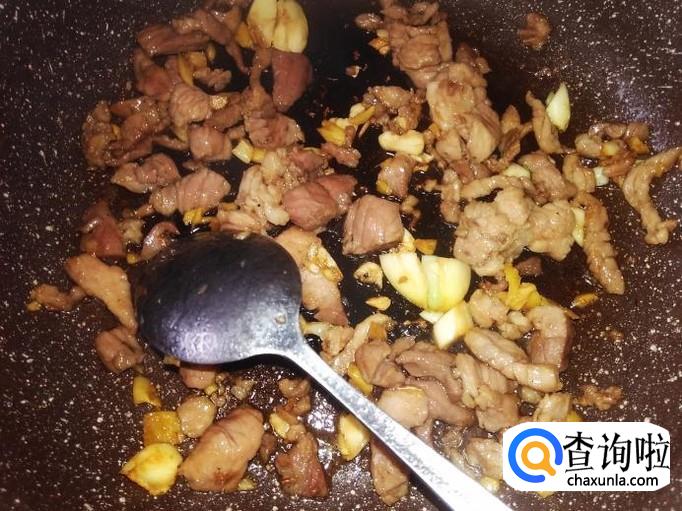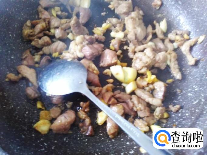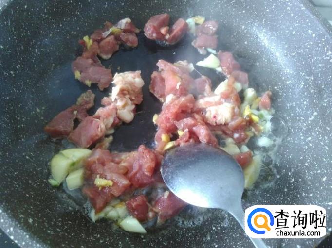 再开火下油,放肉丁进去,大火翻炒。