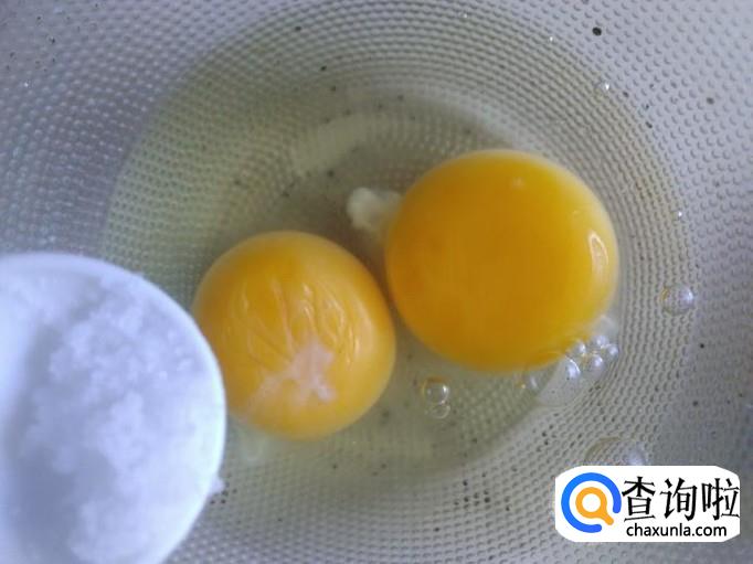 鸡蛋打到碗里,加适量的盐搅拌均匀。