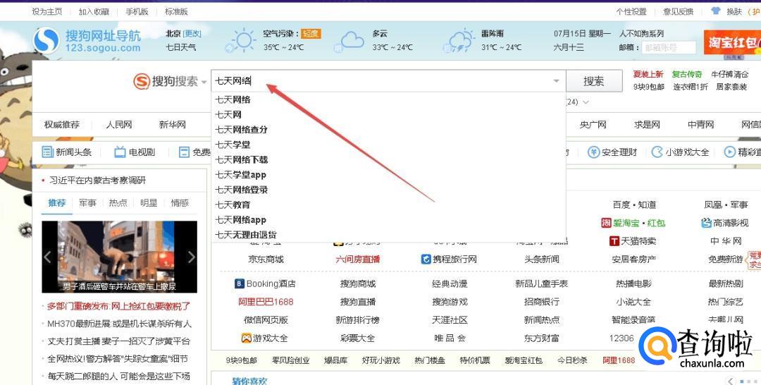 找到“七天网络”后面带有官网字样的链接,点击进入。