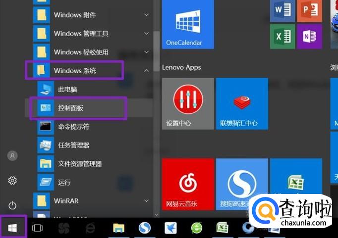 首先,点击电脑的左下角的微软按钮,找到Windows系统,点击打开控制面板;