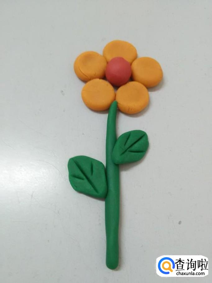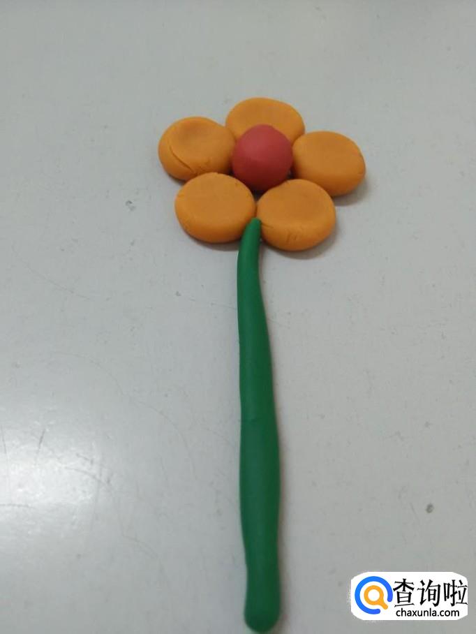 用绿色搓一个细长条,粘在花朵下面,当作花茎。