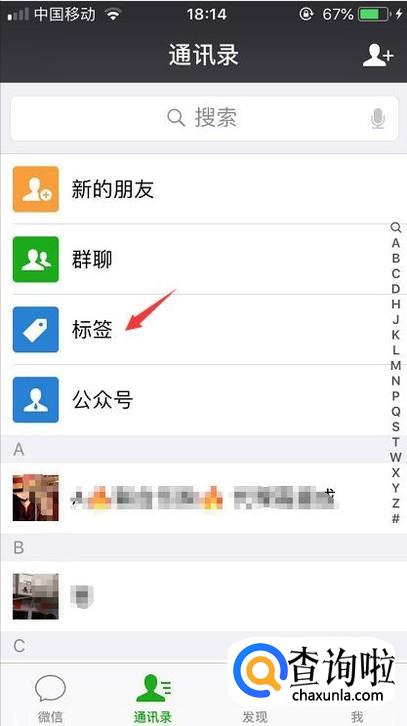 首先我们登录微信后点击到联系人的页面,从上方的标签进入到标签设置功能。